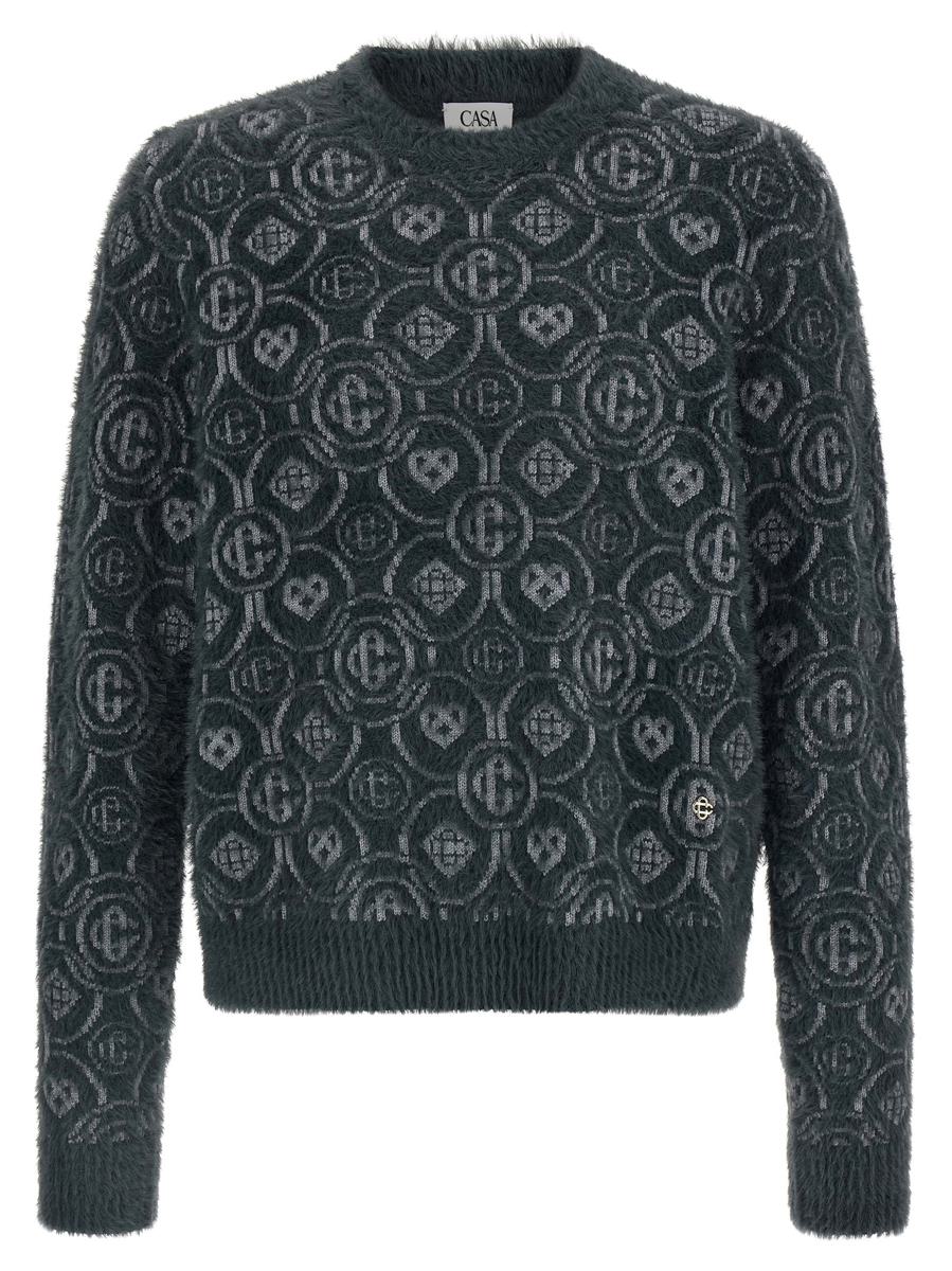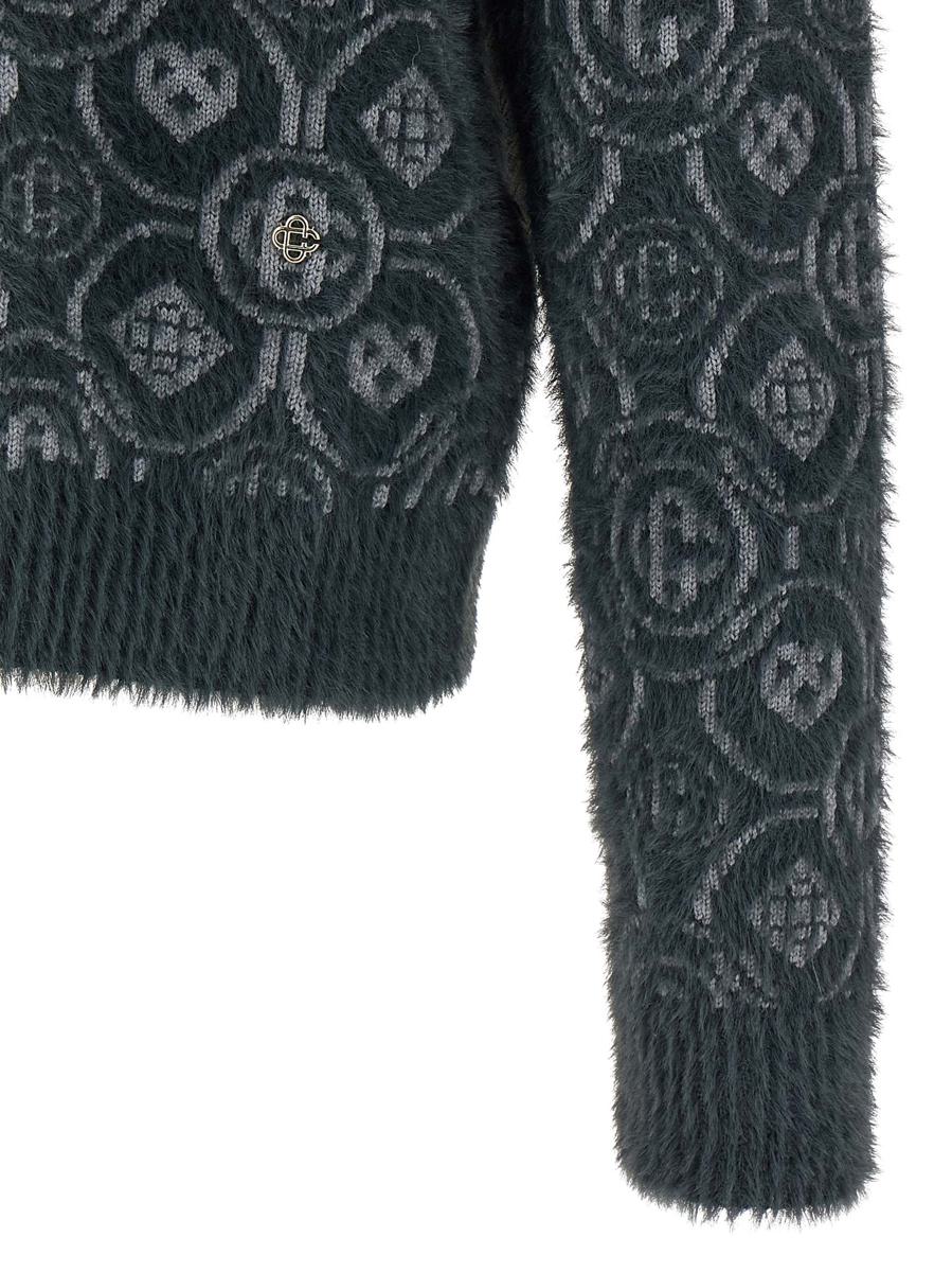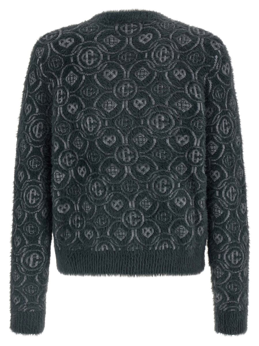 Fluffy Monogram' fluffy-effect wool blend sweater with all-over jacquard monogram, crewneck, long cuffed sleeves and dropped shoulders