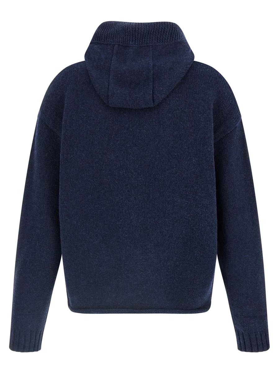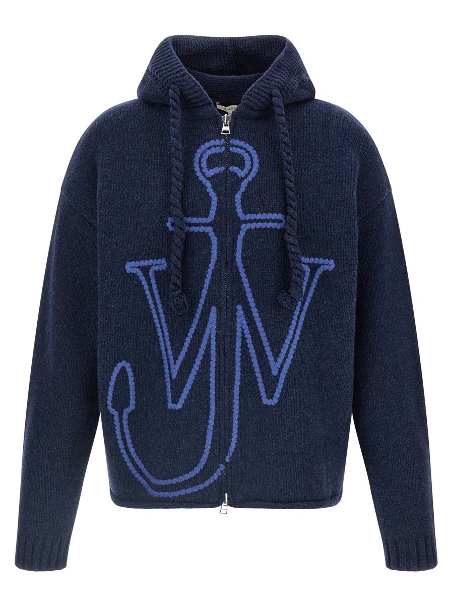 Extra-fine merino wool hoodie with front 'Anchor Embroidery' embroidery, zip closure, long cuffed sleeves and dropped shoulders, raw cut hem