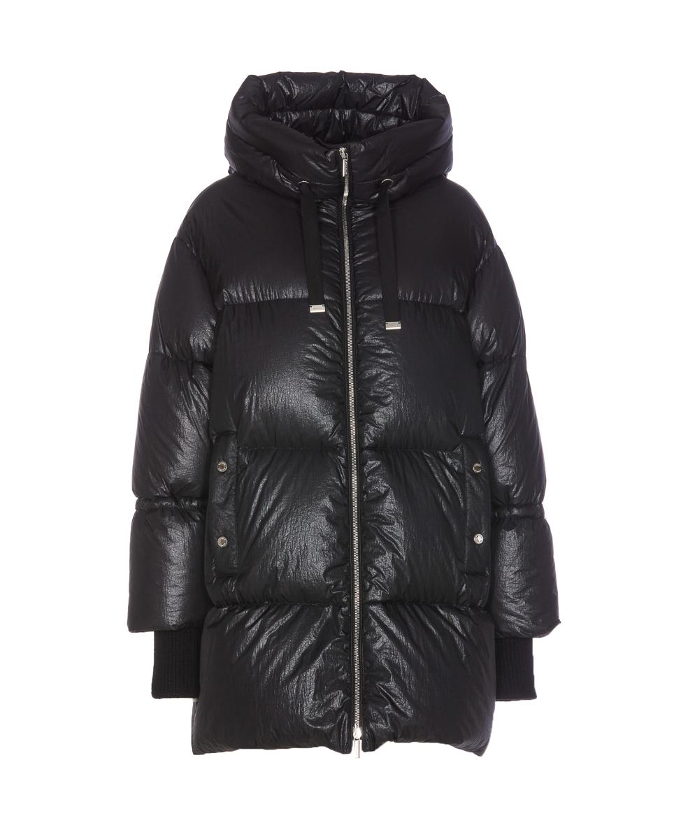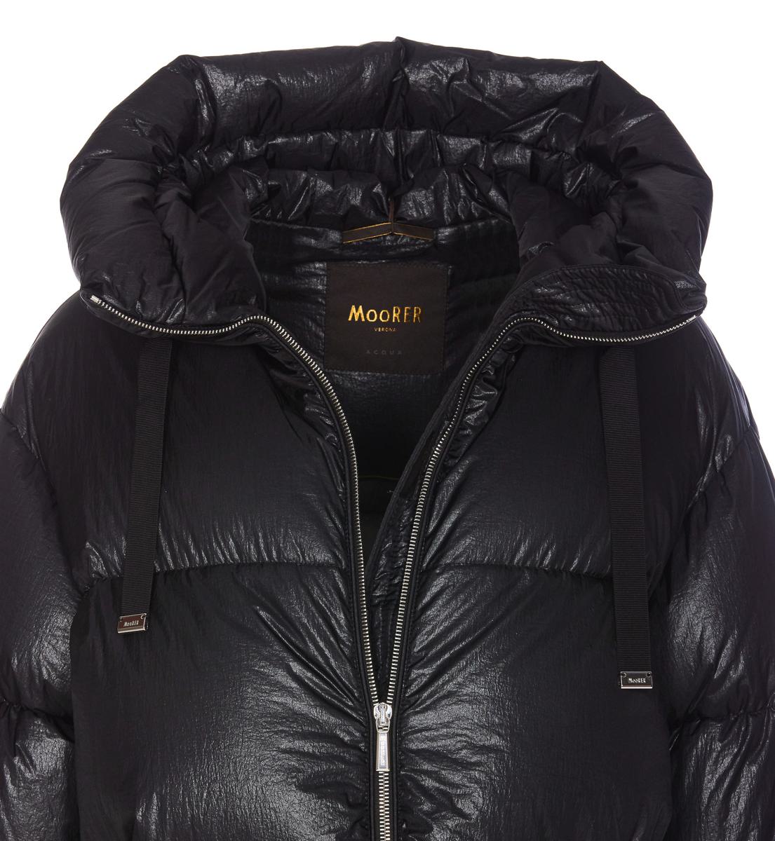Moorer Black Justine Down Jacket With Frontal Zip Closure, Hood Detail, Lateral Pockets With Button Closure, Long Sleeves, Elasticized Cuffs, Padded, EU SIZE (IT)