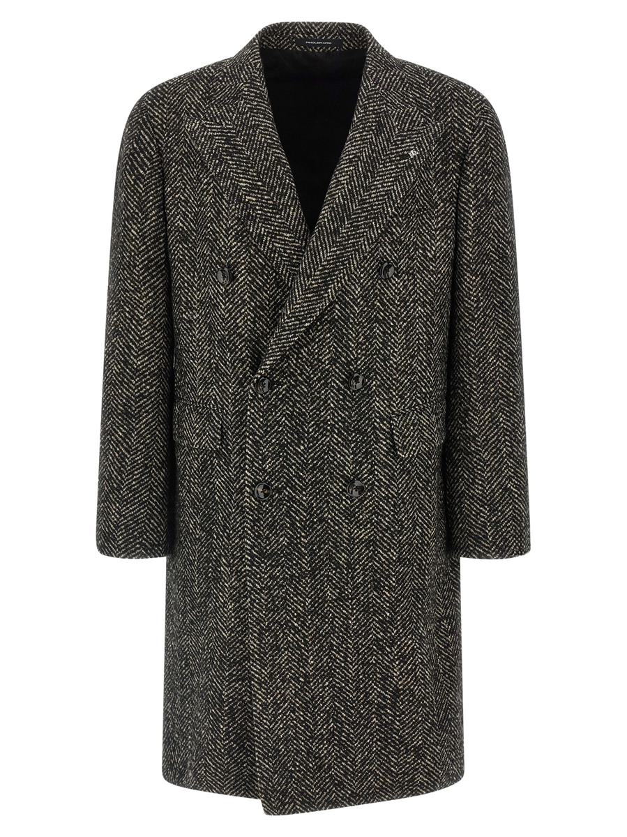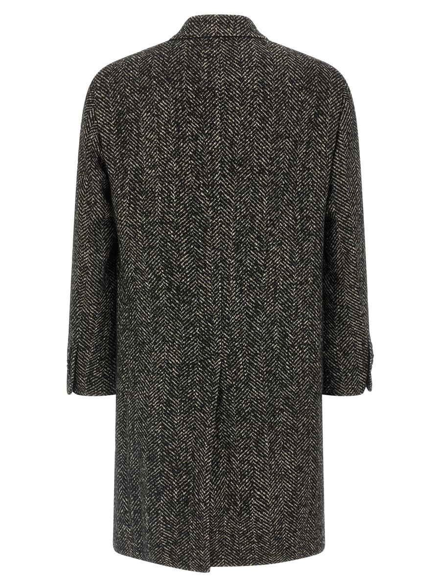'Londra' double-breasted coat in herringbone wool blend with button closure, peak lapels, flap welt pockets, back central split